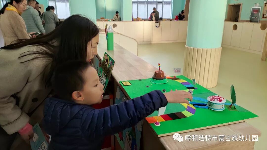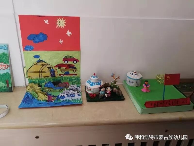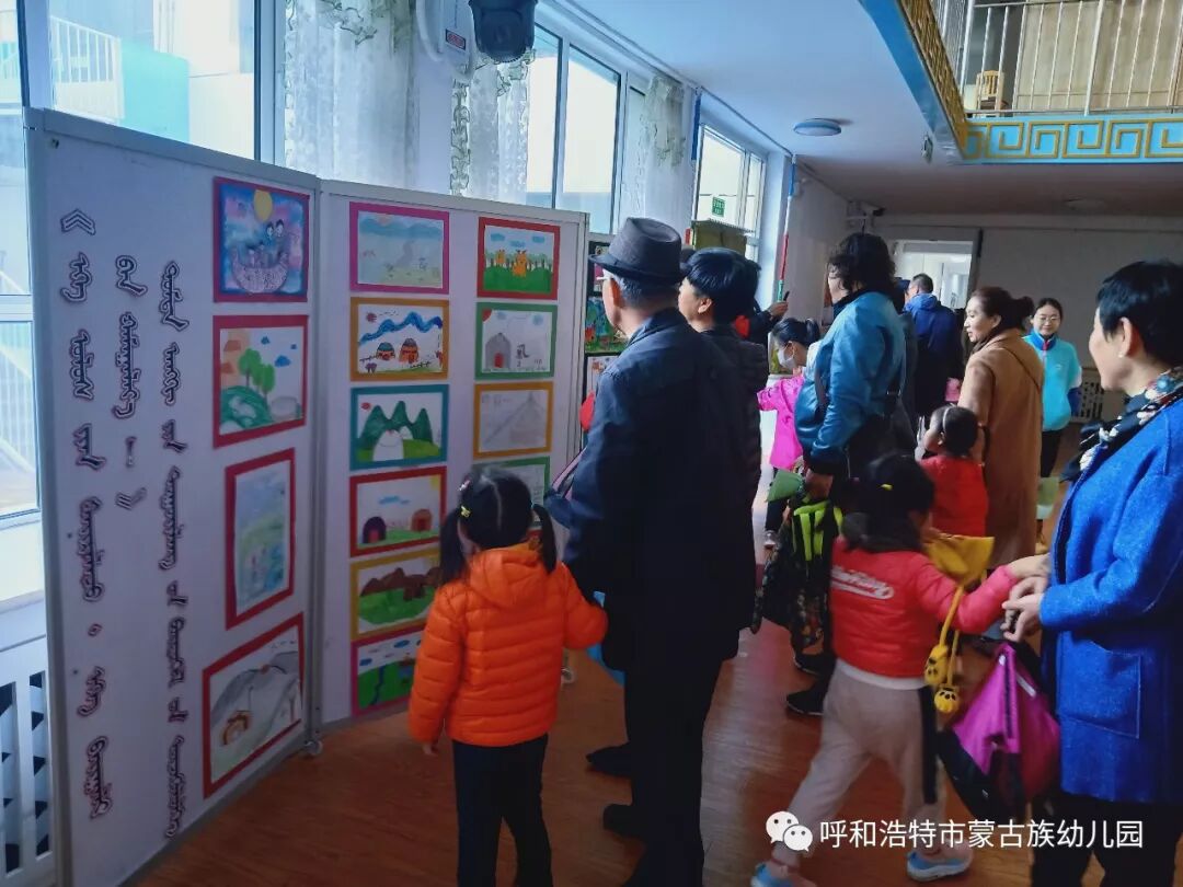 为培养积极正确的审美观念和能力,陶冶高尚的道德情操,同时从小培养幼儿爱祖国爱家乡的情感,培养全面发展的人才,2019年10月25日下午呼和浩特市蒙古族幼儿园(北园区)举办了第一届“爱祖国、爱家乡”亲子作品展”。本次作品展各年级组制作了不同主题的亲子作品。孩子和爸爸妈妈们用各种材料制作描绘了心中强大的祖国和美丽的家乡风景。参加作品展的每一幅亲子作品都反映出对祖国、对家乡的热爱之情。孩子和家长们驻足欣赏着一幅幅画作,不时慨叹于精巧的手艺和对美的表现力。
