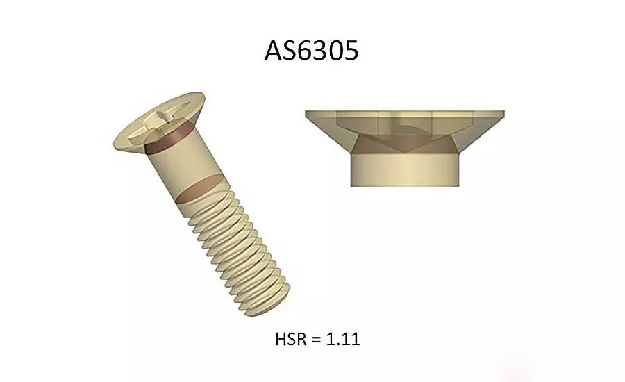 最近审查航空螺钉的认证测试数据(100度沉头,六叶凹槽,螺纹头,钛合金TI-P64001,阳极氧化,涂有二硫化钼,在环境温度至350℃时,强度为900兆帕斯卡),发现一批M5直径螺栓未能满足所要求的拉伸试验极限,其中头部与杆部接合处的失效水平低于要求的失效水平。通过调查发现,在环境温度至350℃时,强度为1,100兆帕斯卡,这些零件之前已经通过类比标准用于不同的航空螺钉的标准:盘头,六叶凹槽,粗公差正常柄,中等长度螺纹,钛合金,阳极氧化,涂有二硫化钼。