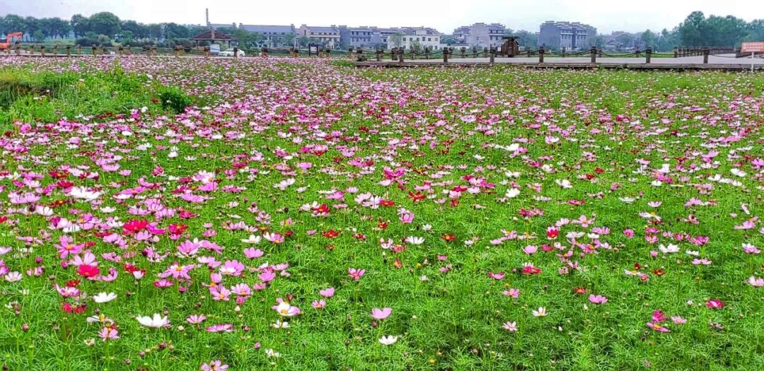 安义古村三村中间由一片花海连通,被称为“花田喜地”。花这边是罗田村,花对面是水南村,出花海是京台村。百草都是药,我们这片花海里种有五大品种:波斯菊、蝶恋花、鼠尾草、马鞭草、硫化菊;春季有油菜花,夏入秋时还有荷花,是千年古村中一副绝美的田园画。
