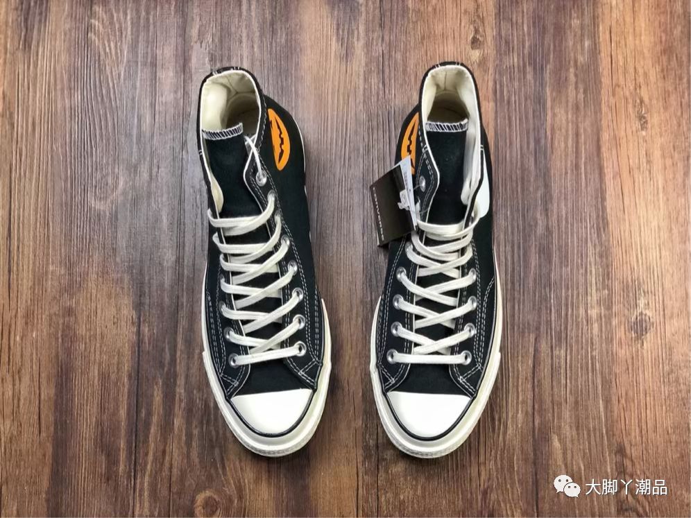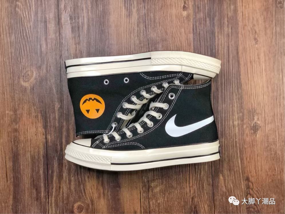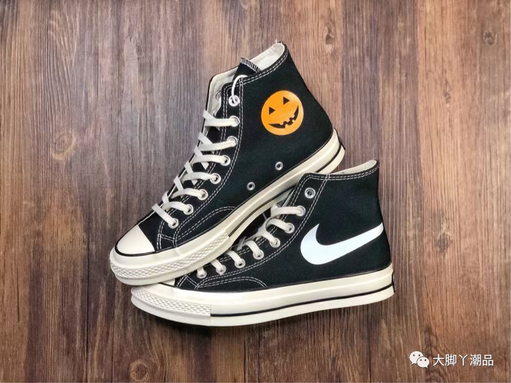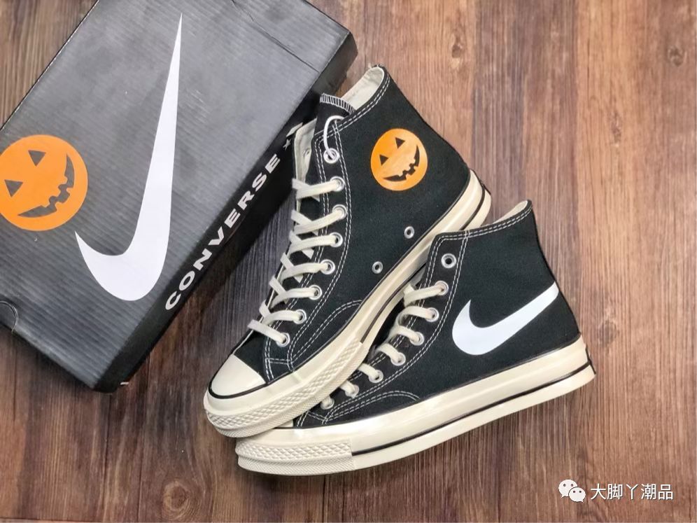 原厂亮油 双层布围条 硫化休闲帆布板鞋 该鞋以匡威极具代表性的70s为蓝本 鞋身配以鲜艳的南瓜和耐克图案 使经典充满活力