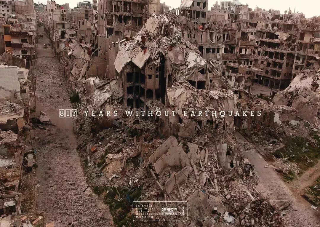 这是一组针对叙利亚内战的平面海报,记录了就算没有地震、飓风等,自然灾害下的叙利亚依然一片狼藉。其实,最严重的自然灾害就是人类本身的行为。