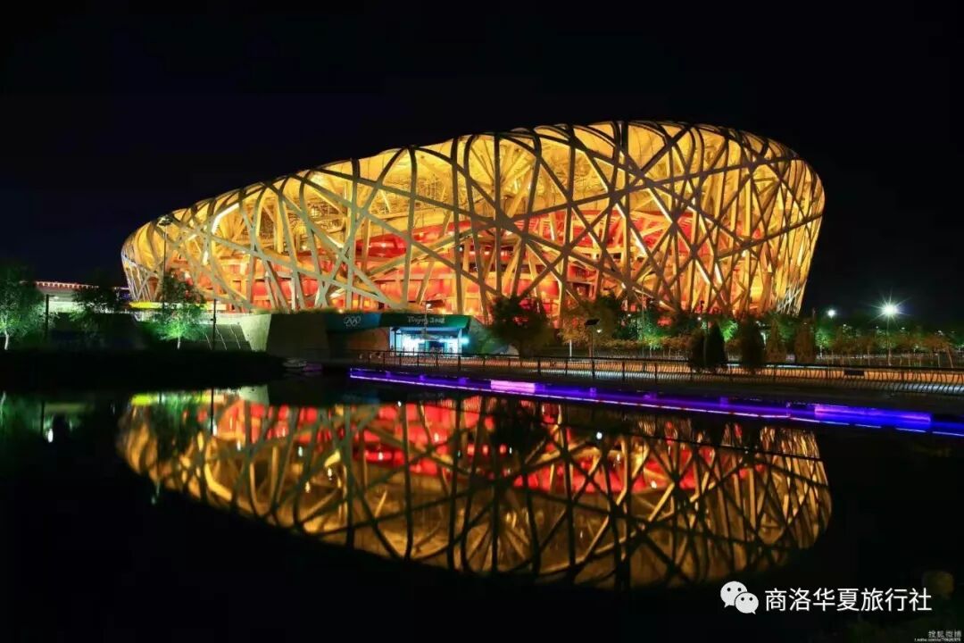 水立方(国家游泳中心)(外观),2008年奥运会期间,在此承担游泳、跳水、花样游泳、水球等水上项目的比赛。“水立方”的建筑结构来自于肥皂泡堆积的概念,因为要造出水分子的感觉,每个气枕都是不规则的多面体,所以气枕依托的钢架构也要求是多维空间的12面体或者14面体,搭建这样的钢架构在国内乃至世界上都是第一次。每到晚间,水立方还会营造出奇异美妙的灯光效果。鸟巢(国家体育场)(外观),本身就是一个精美的艺术品,其外观独特,象征了对人类文明的孕育与呵护。为更好地保留奥运遗产,让更多的人重温奥运的激情时刻,国家体育场在奥运会后已向游人开放,让游客体验原汁原味的奥运大餐。在这里游客可参观奥运赛场、观看奥运精彩比赛回放、购买奥运及鸟巢纪念品等。