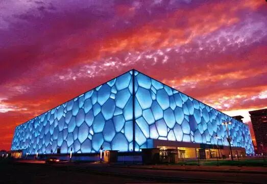 世界上第一个尝试实先这一肥皂泡结构体系的建筑--水立方