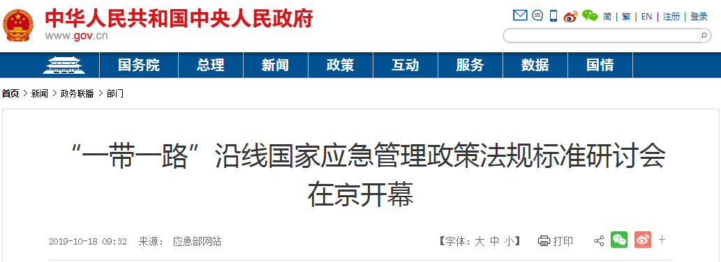 10月17-18日,“一带一路”沿线国家应急管理政策法规标准研讨会在北京成功举办。本次研讨会以“加强应急管理法治建设,促进‘一带一路’沿线国家安全发展”为主题,30余位中外嘉宾发表主旨演讲,重点围绕自然灾害防治法律与政策、安全生产依法治理、“走出去”机构及企业安全风险防控机制等专题研讨交流。演讲内容既有应急管理政策法规标准理论层面的解读阐释,又有实践层面的探讨研究;既有国内典型做法,又有国外先进经验。