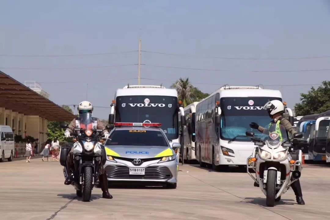 活动由泰国政府提供安保,由警车开道,为我们“保驾护航”。
