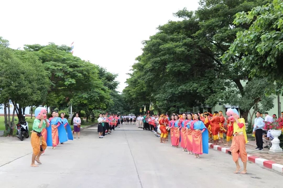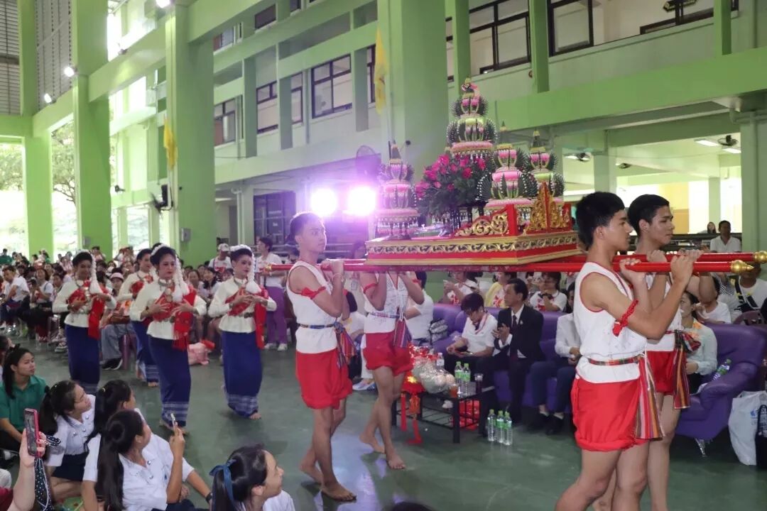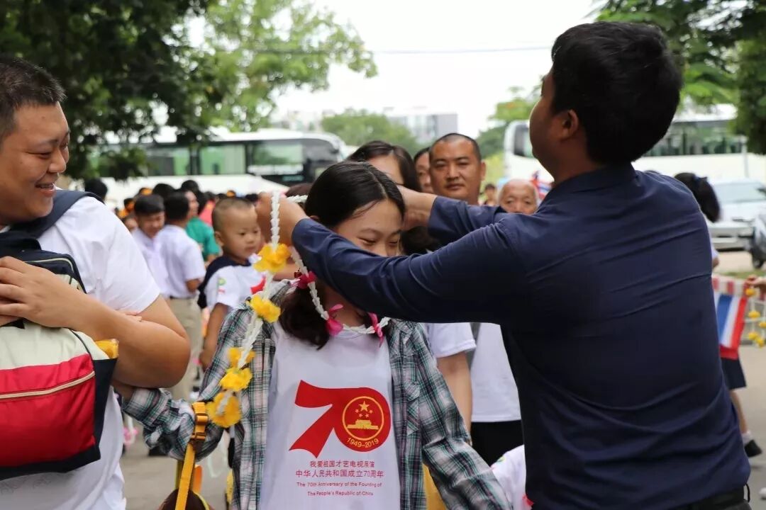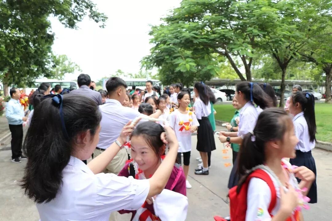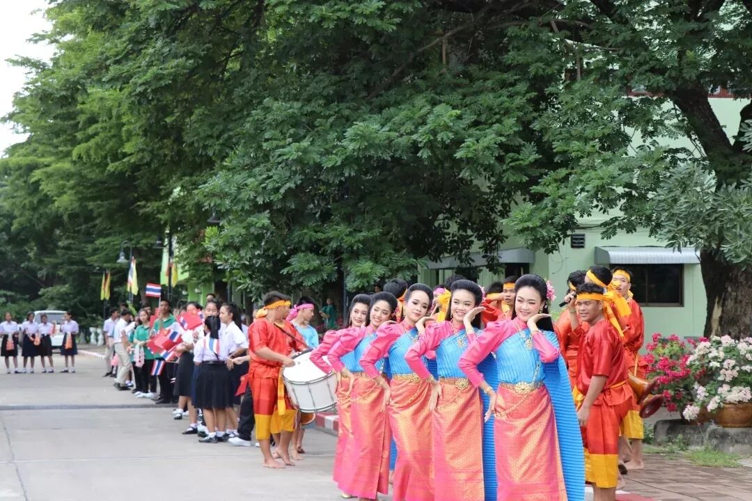 走进泰国知名学府,学习泰国皇家礼仪,讲解泰国礼仪知识,举行升国旗仪式,享受泰国知名学府学生盛装夹道欢迎,并为中国学生献上花环