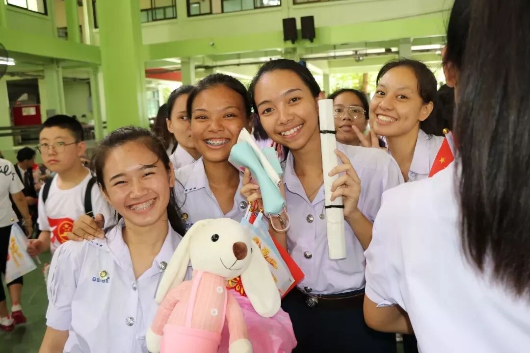 走进泰国知名学府交流演出,两国青少年互换纪念品,为两国青少年搭建友谊桥梁,并颁发国际交流证书