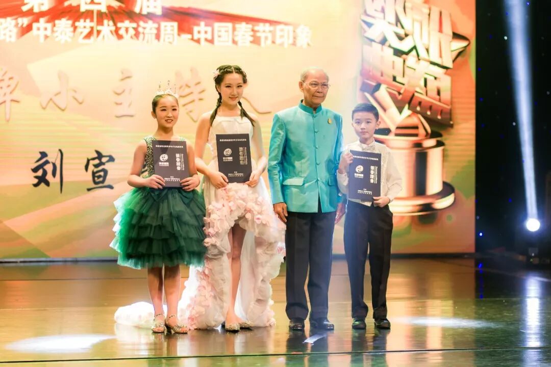 由泰国亲王为每一位优秀教师、小主持人颁奖,并合影。国际殊荣,终身荣耀