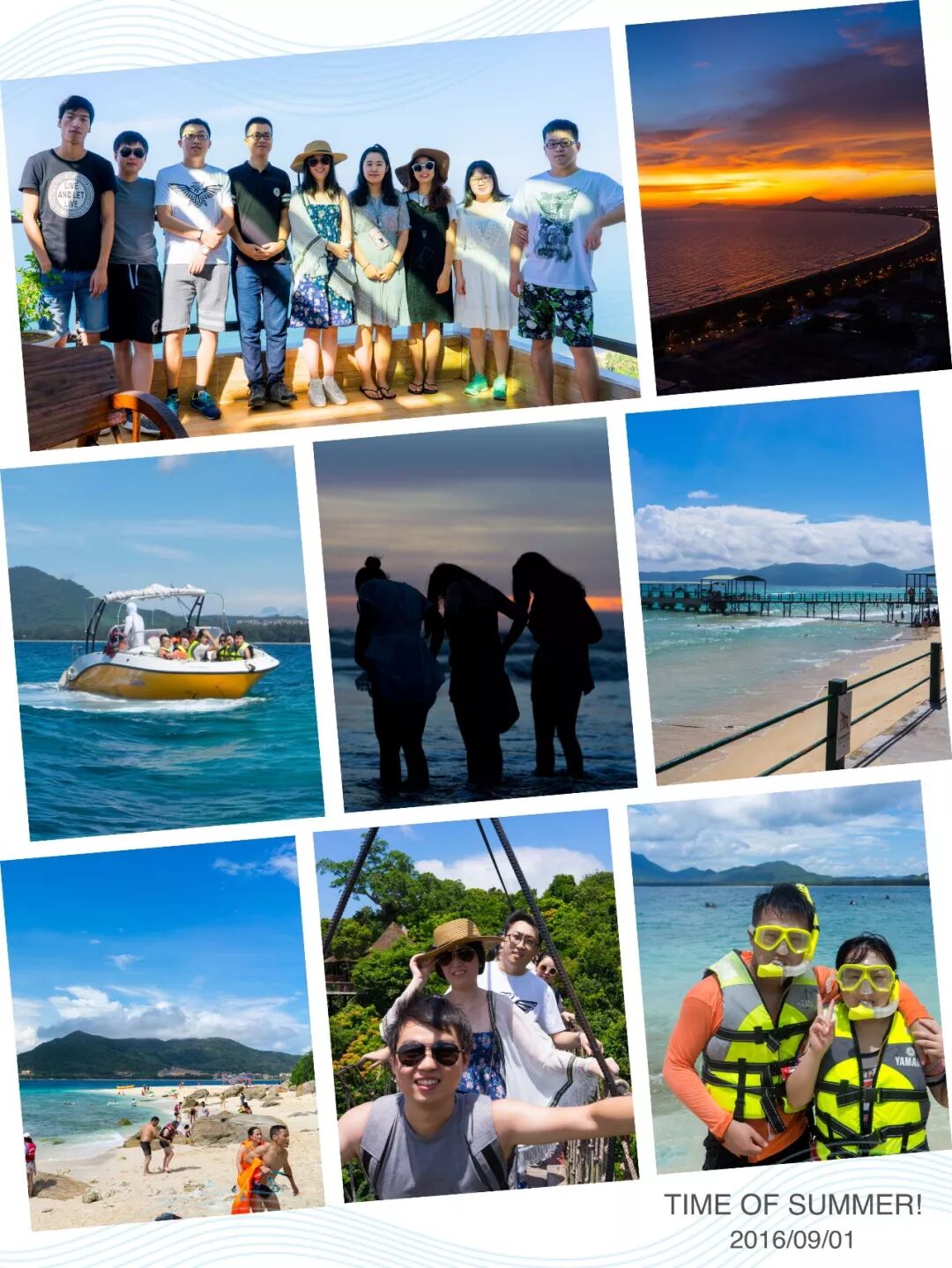 2016年我们去了度假胜地海南三亚在那里我们住民宿、看夕阳、吃烧烤也第一次感受到了蓝天白云的魅力潜水、香蕉船、快船更是玩了个遍