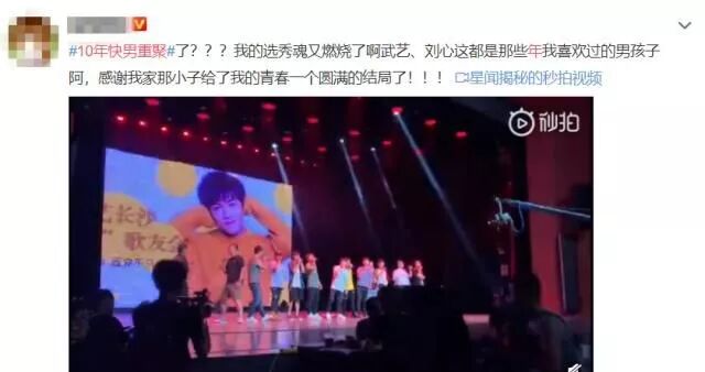 对于那些有着回忆情节的网友而言,今天绝对是值得纪念的一天,下午时分,据多名网友在微博上爆料,快男武艺在参加最新一期《我家那小子》录制的时候举办了一场别开生面的个人音乐会,但万万没想到,这次音乐会竟然促成了10年快男重聚,猝不及防就是一波回忆杀。