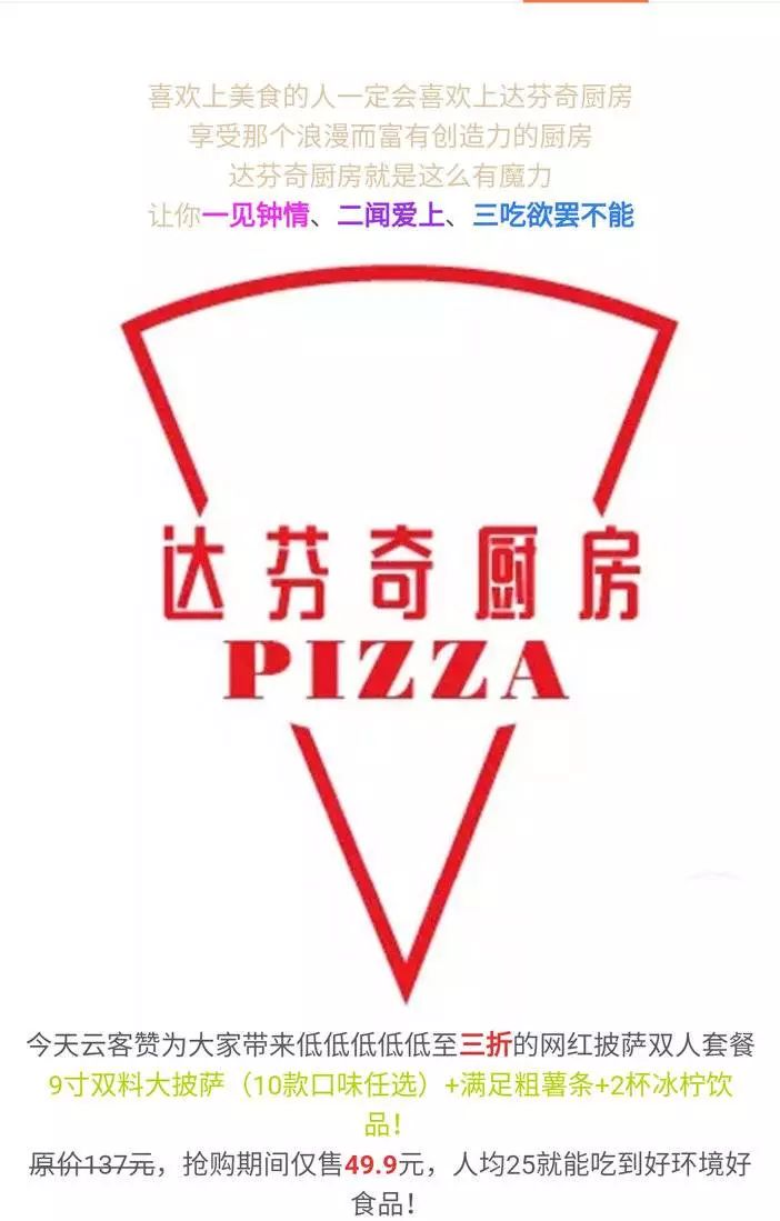 【扬名广场·达芬奇厨房】3折尝鲜网红披萨双人套餐,含9寸双料大披萨(16种口味任选)+满足粗薯条+2杯冰柠饮料,仅售49.9元!超长使用期,人均只要25元,带上心爱的TA,出发!