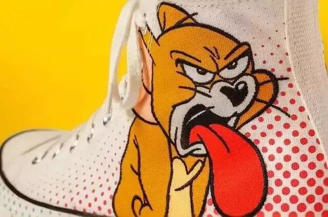 最大的亮点在于鞋身侧面显眼的汤姆与杰瑞的卡通形象,