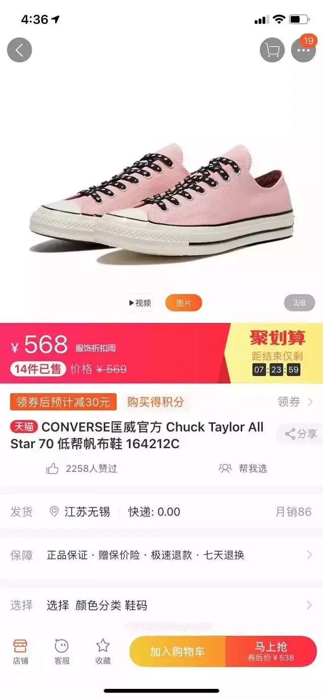 C0NVERSE 1970s限量版太极阴阳男女情侣款帆布鞋