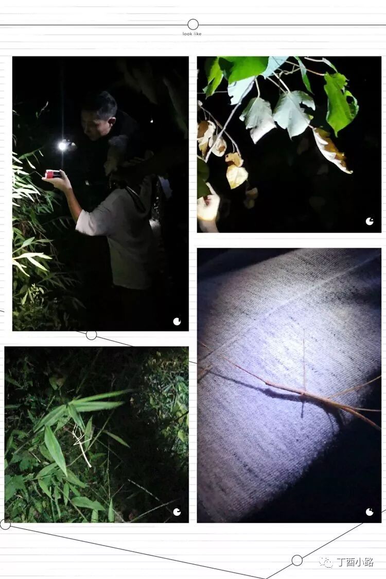 找到了!找到了!孩子们打着灯儿,惊喜的呼叫着。网织虫,蜘蛛,夜甲,竹目蜂,竹节虫,竹蛉………小小的昆虫,长长的故事,老师给我们娓娓道来它们的神奇。