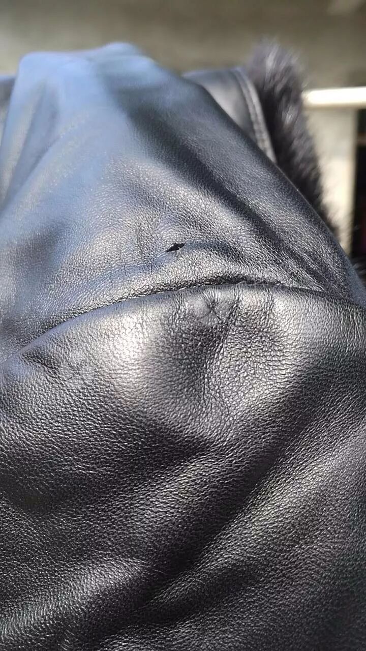 泗洪第一街第一位置的柒牌男装,七八月份特价时候买的皮衣,一次未穿,今天拿出来试试,没想到肩膀上有个明显的尖锐口子。原价近六千,打折后也近两千,联系售货员后,回答时间长了,没有好办法只能保养……提醒准备去七牌男装购买衣服的人士,格外要仔细小心了!大款除外。
