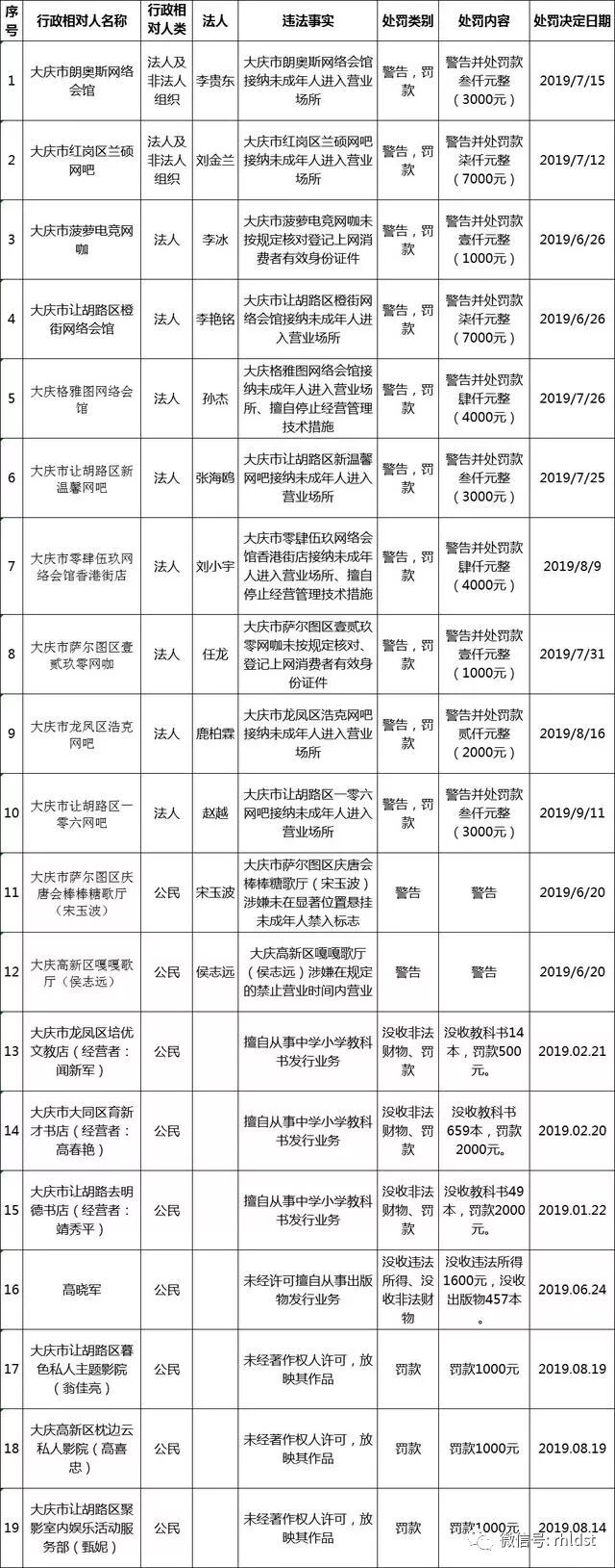 大庆多家网吧、歌厅、私人影院等场所被行政处罚