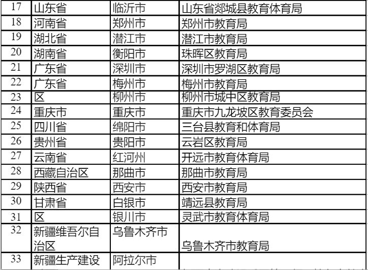2019年全国青少年校园足球试点县(区)名单