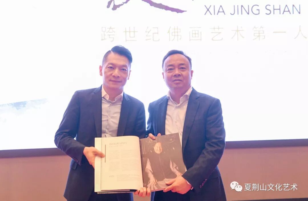 由财团法人夏荆山文化艺术基金会与南京牛首山文化旅游区共同举办的 “牛首?艺海——当代艺术名家夏荆山书画展”,于10月27日在南京牛首山佛顶宫盛大开展,并于上午十时在佛顶宫多功能展厅举办开幕式。开幕式中同时有《夏荆山:跨世纪佛画艺术第一人》的新书发布及夏荆山巨幅画作〈释迦牟尼佛〉赠画仪式。现场由南京市各级台办领导、牛首山文化旅游区领导、财团法人夏荆山文化艺术基金会领导、各界文化贤达及夏荆山大师弟子们共同参与,盛大隆重,亦为“2019牛首山文化艺术节”的重点活动。