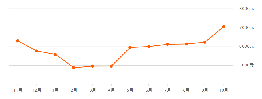 崇明10月二手房均价 17055 元/m?崇明9月二手房均价 16227 元/m?环比上月上涨 5.11% ↑同比去年同期下跌 1.90% ↓