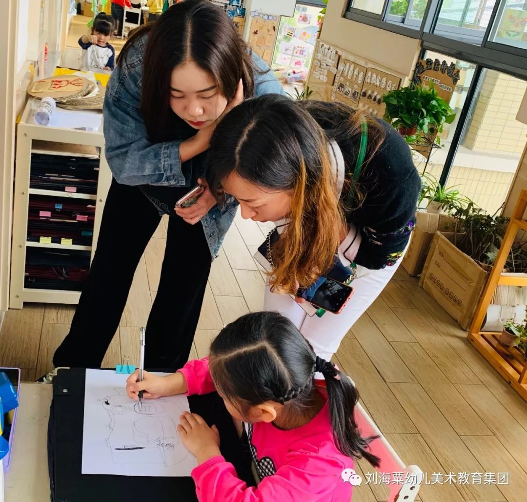 钱雪老师执教的中班创意水墨借形想象活动,则引导孩子们在看看、说说、画画的自主游戏过程中感受墨与水的融合、创意添加。步步递进的环节,真实呈现的集体活动探究现场让观看的老师感受到孩子们无限创造的可能。展现出了刘美有形、有色、有趣课程,多维度引导幼儿玩中学,发掘材料的潜在价值;展现出了刘美娃主动、生动、灵动,在美术活动中收获学习品质;更展现出了刘美的教师创想、创意、创造,使其在美术活动中更具有教学魅力。