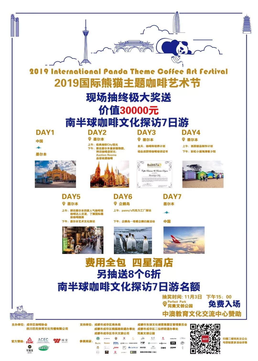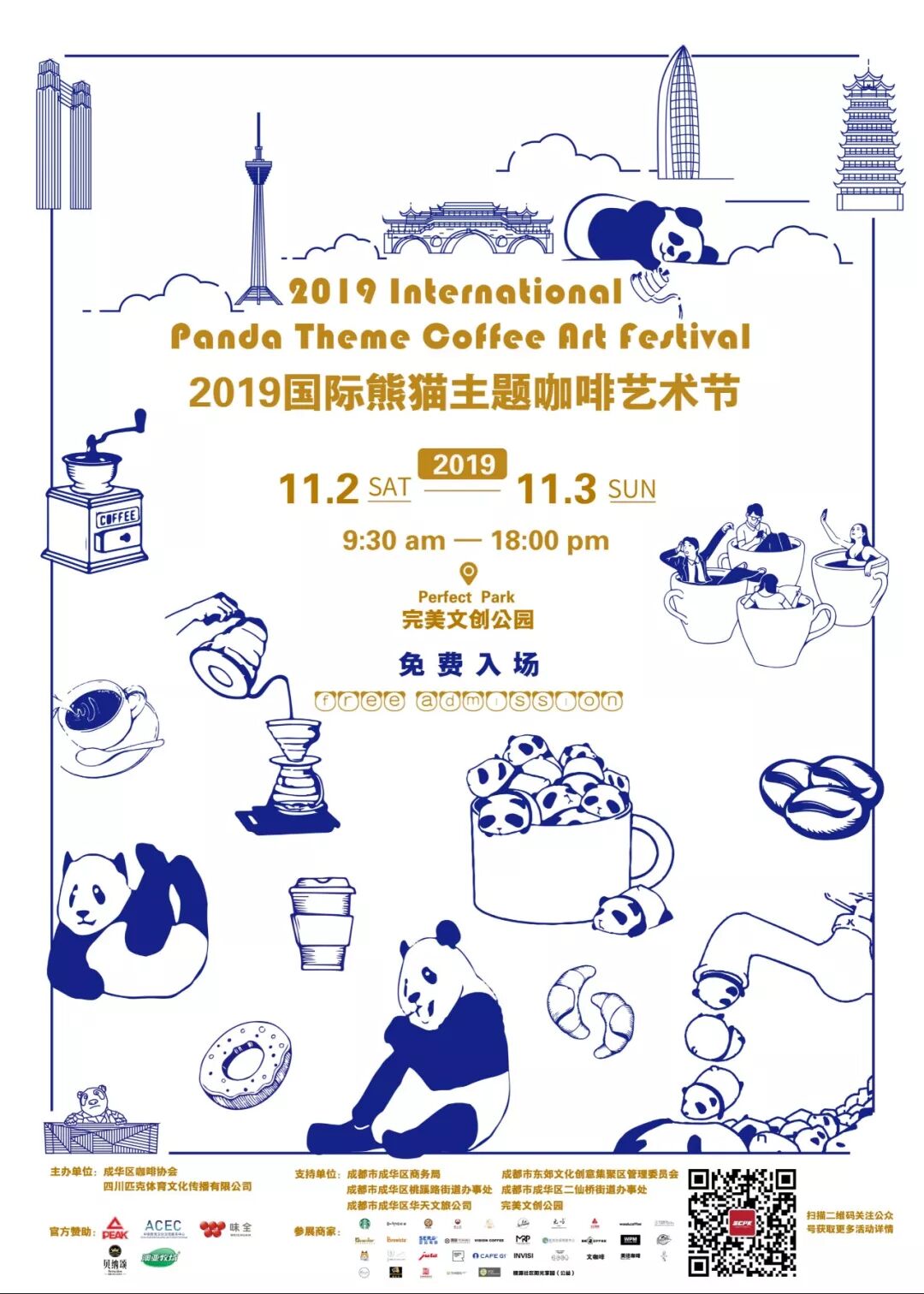 2019年11月2日-3日在完美文创公园举办一场属于我们成都人民独有的首届国际熊猫主题咖啡艺术节,请辖区居民积极参与,相互转告。具体安排如下: