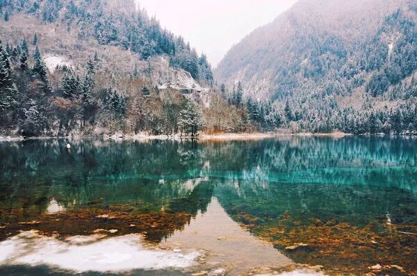 当彩林不再与海子争辉,冬日来九寨,可以单纯地看海。此情此景,让人一辈子都会记得。