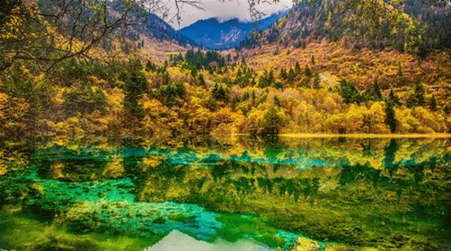 ★九寨沟“翠海(高山湖泊)、叠瀑、彩林、雪山、藏情、蓝冰”以六绝驰名中外;
