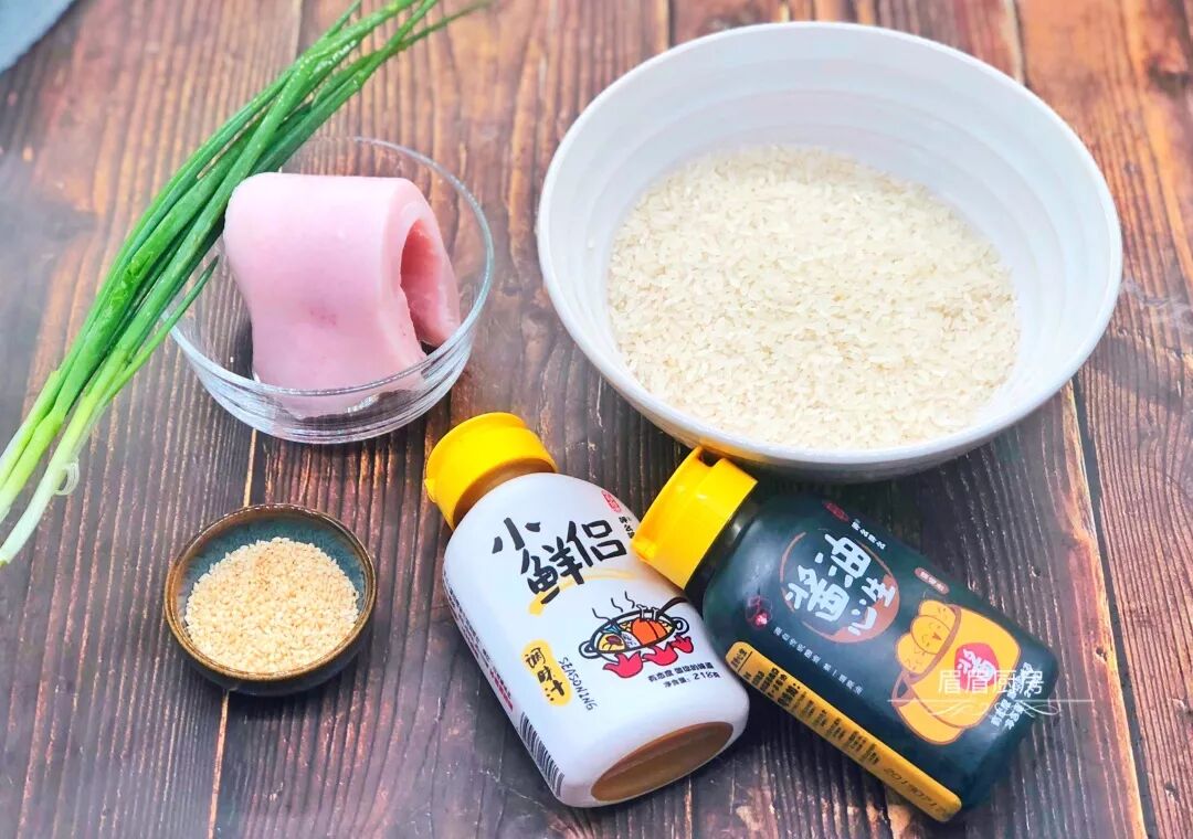 米饭适量、肥肉1块、酱油心生适量、小鲜侣调味汁、葱花适量、芝麻适量、