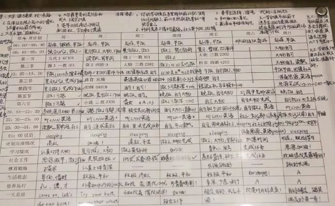 凌晨1点睡觉,清晨6点起床,6点40开始学习,晚上9点到凌晨1点全都安排得满满当当。