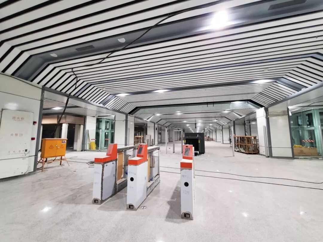 横琴站是拱北至横琴段全线最大的车站,在现场可以看到横琴站内部装修已经基本完工,工人正在现场进行站内的清理工作。