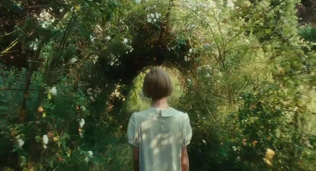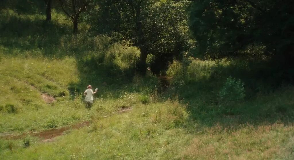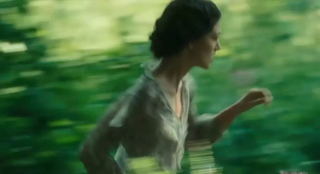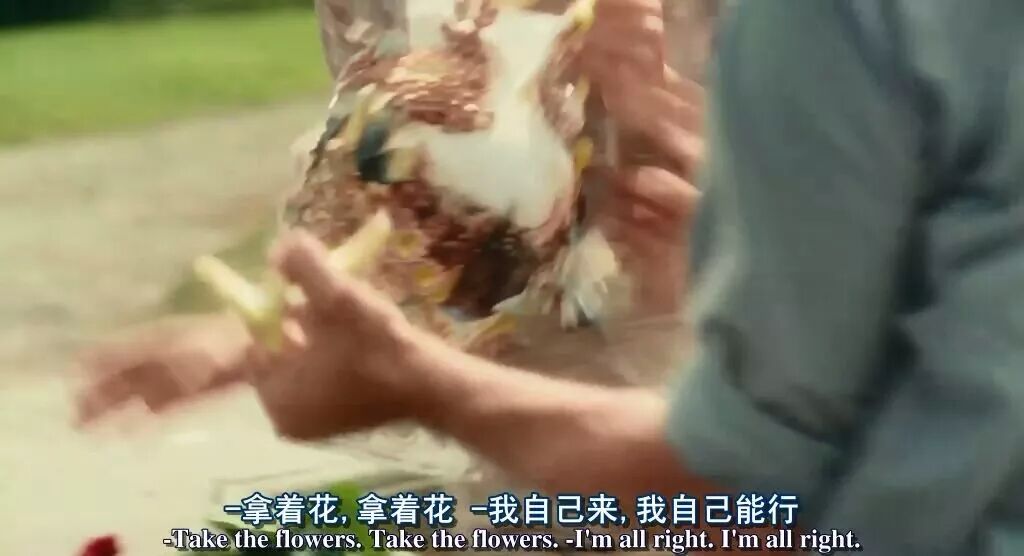 镜头一转,姐姐在奔跑,手里拿着一束花。