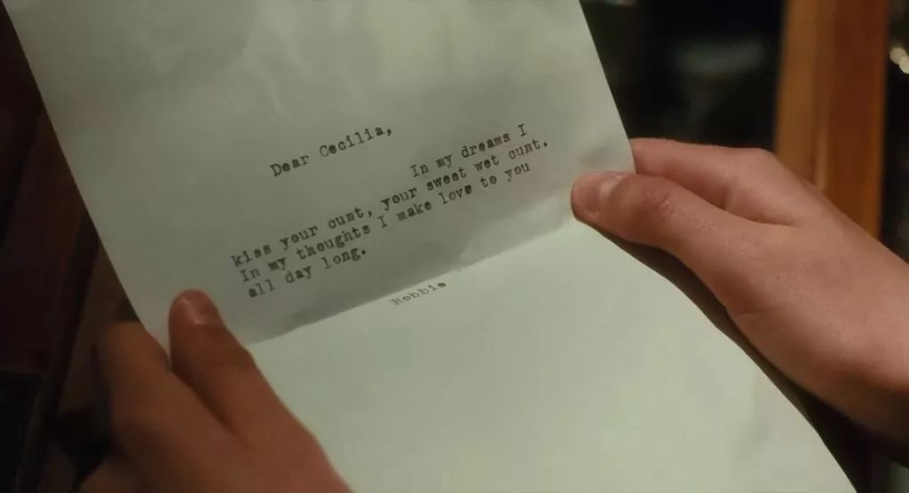 与此同时,罗比用打字机敲打着对西西莉亚的道歉信。