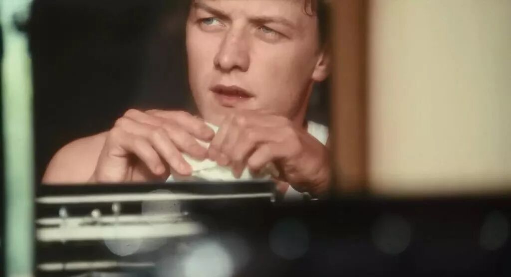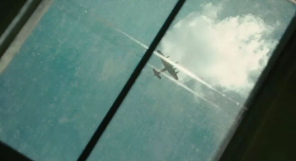 罗比在房间洗着澡,看着头上飞过的战机,不知思考着什么。