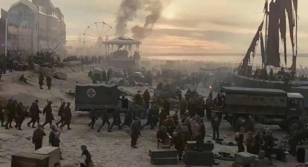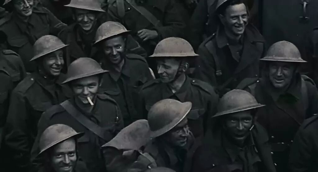 屏幕上正放着敦刻尔克大撤退的纪录片,成功撤离的士兵脸上都洋溢着胜利的笑容。