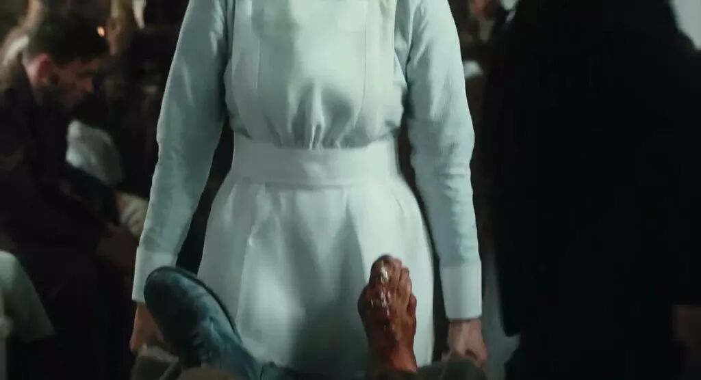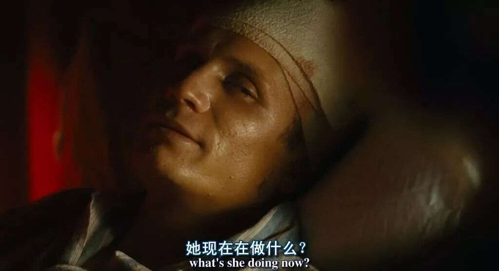 回应着他的胡话,让他喊自己布莱尼。(她在潜意识中把这个男人当成了罗比,将自己的感情寄托在这上面)