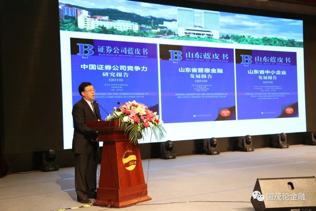 本届论坛上,青岛大学资本市场研究院还举行了成果发布会。青岛大学资本市场研究院孙国茂教授介绍了《中国证券公司竞争力研究报告(2019)》、《山东省普惠金融发展报告(2019)》和《山东省中小企业发展报告(2019)》三本蓝皮书主要内容。