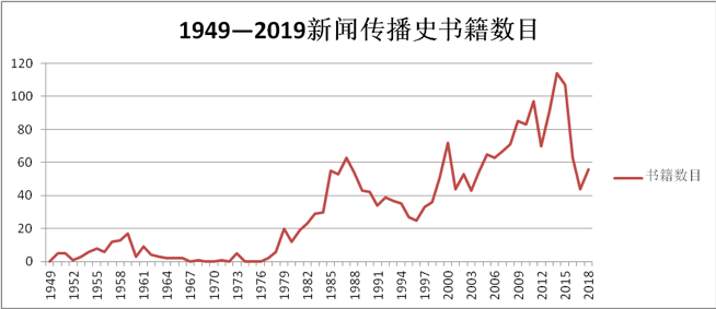 在中国,新闻传播史研究从无到有,历经萌芽、初步成长、曲折前行、恢复展开、反思进取、深化创新等六个时期,至今已有一百多年的历史,成为一门历史的科学。早在1833年4月,广州《中国丛报》(第1卷第12期)先后刊登了英文文章“Gazette”(《小报》)和“PekingGazette”(《京报》)向近代中外读者介绍了中西小报和京报出版发行情况;同年8月,近代来华传教士马礼逊在澳门《杂闻篇》第2号发表中文文章《外国书论》,介绍了西方“新闻纸”出版状况。1834年1月(农历1833年12月),《东西洋考每月统记传》刊登了一篇中文文章《新闻纸略论》,简略地向中国读者介绍了欧洲报纸产生的历史与现状及其出版自由观念。这些中英文新闻学专文虽然仅是传教者一种不自觉的治史行为,但中国的新闻传播史研究由此萌芽,从无到有,逐步开展起来。1908年,报人章士钊出版的《苏报案纪事》,成为中国最早的报纸个案史著作。新闻传播史研究逐渐成为研究者的自觉行为,并取得初步系统性成果。如1917年,姚公鹤撰写的《上海报纸小史》在《东方杂志》连载,后汇集出版。1917年至1949年是中国新闻传播史研究的初步成长时期。笔者根据新闻工具书《中国新闻学书目大全1903-1987》中“世界新闻事业历史与现状、中国新闻事业历史与现状和其他国家新闻事业历史与现状(9)”等三部分统计,该时期关于新闻传播史的书籍达164种,其中,中新史方面143种,外新史21种,[1]初步形成综合通史、分类专门史和媒体个案史等多角度的新闻传播史研究格局。新中国成立70年来的新闻传播史研究是在中国100多年新闻传播研究史上涌现成果最多、成绩最大、社会反响最好的繁荣时期,比起1917-1949年中国新闻传播史研究的初步成长时期取得了突飞猛进的跨越性式增长。据方汉奇先生在论文《新中国五十年来新闻史研究》统计,从中华人民共和国成立的1949年到1999年,累计出版的新闻史专著和教材,达144种;累计发表的新闻史方面的论文和文章,达5203篇;分别大约是1917年到1949年以前那一段时期的3倍和100倍。[2]而据在其论文《1949年以来大陆的新闻史研究》中初步统计,从1949到2005年这56年之间,累计出版的新闻史专著和教材达253种,发表的新闻史方面的论文和有关文章达6021篇,分别是前一个时期的5倍和60多倍。其发展的速度和规模,都是前一时期所难以企及的。[3]另据中国人民大学赵战花博士论文《中国新闻史学史》(2018)的《附录一:新闻史研究书目1949-2018》则共有2027条目。[4]在前人整理基础上,笔者进行了重新整理,据不完全统计,1949-2019年(截止2019年6月30日)仅中国大陆关于新闻传播史的书籍达2228种。